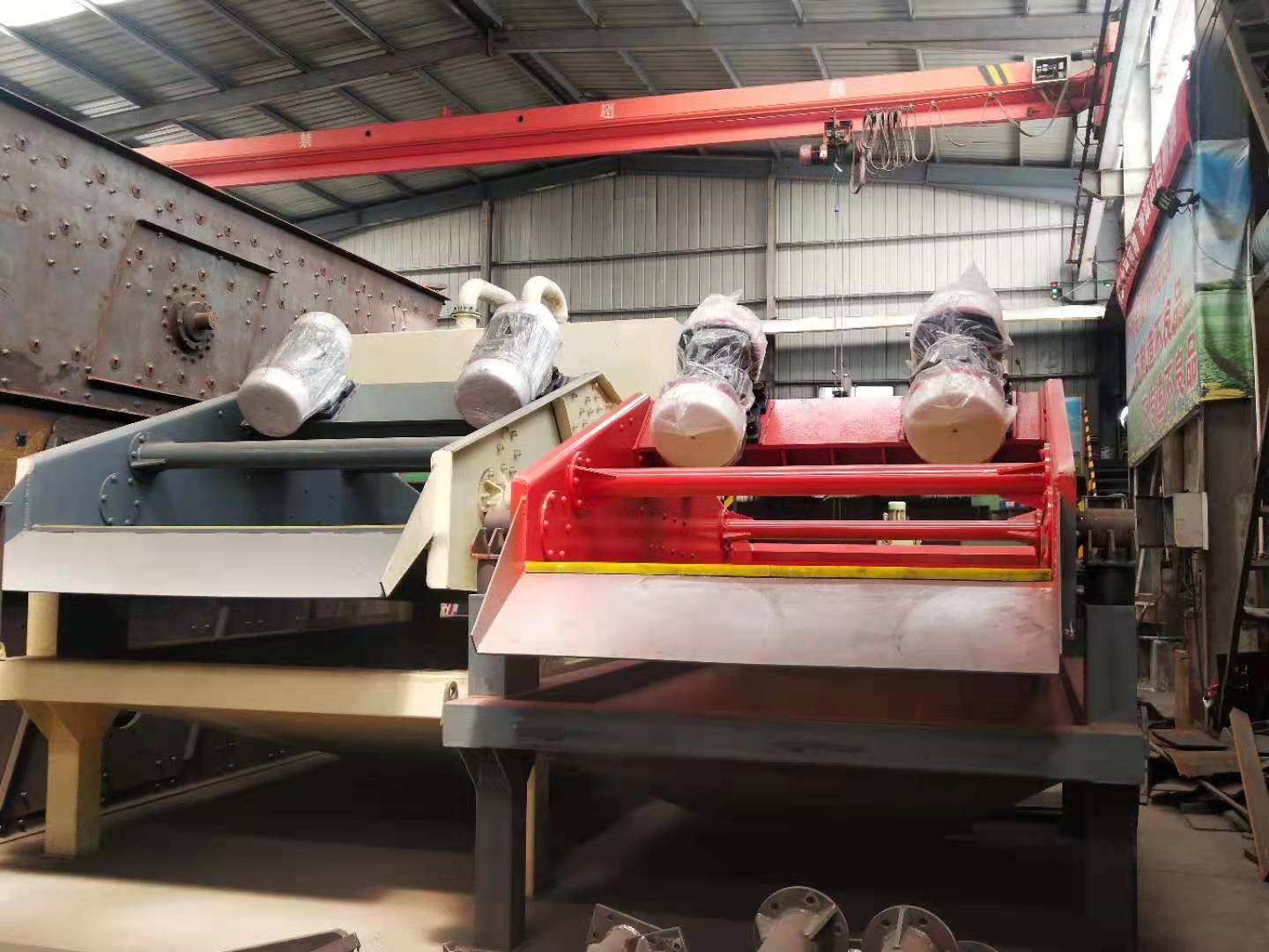 成熟的細砂回收都使用的是振動電機進行直線脫水,其振動頻率一般可達1500-300次,完全可以達到振動脫水和下料效果,若在尾礦回收階段使用,則只需改變振動電機安裝方向便可,與振動篩平行安裝,便會增加回收尾礦的下料速度。