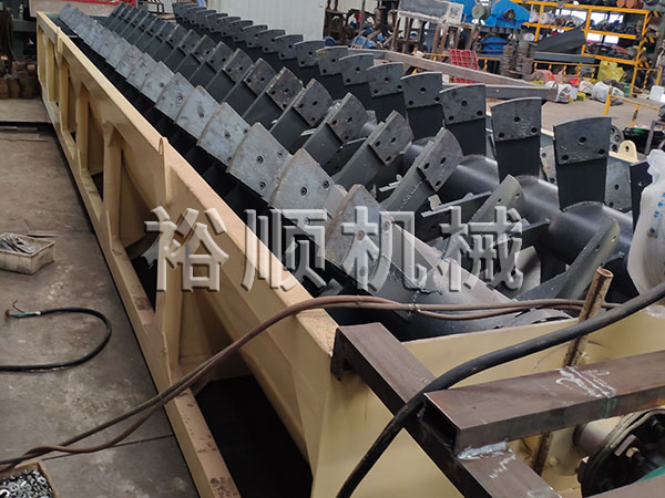 螺旋洗石機主要由槽體、減速機、電機、中心軸、螺旋葉片、支架組成。支架焊接在中心軸上,螺旋葉片裝好后用螺栓壓緊,使葉片不下垂不變形。